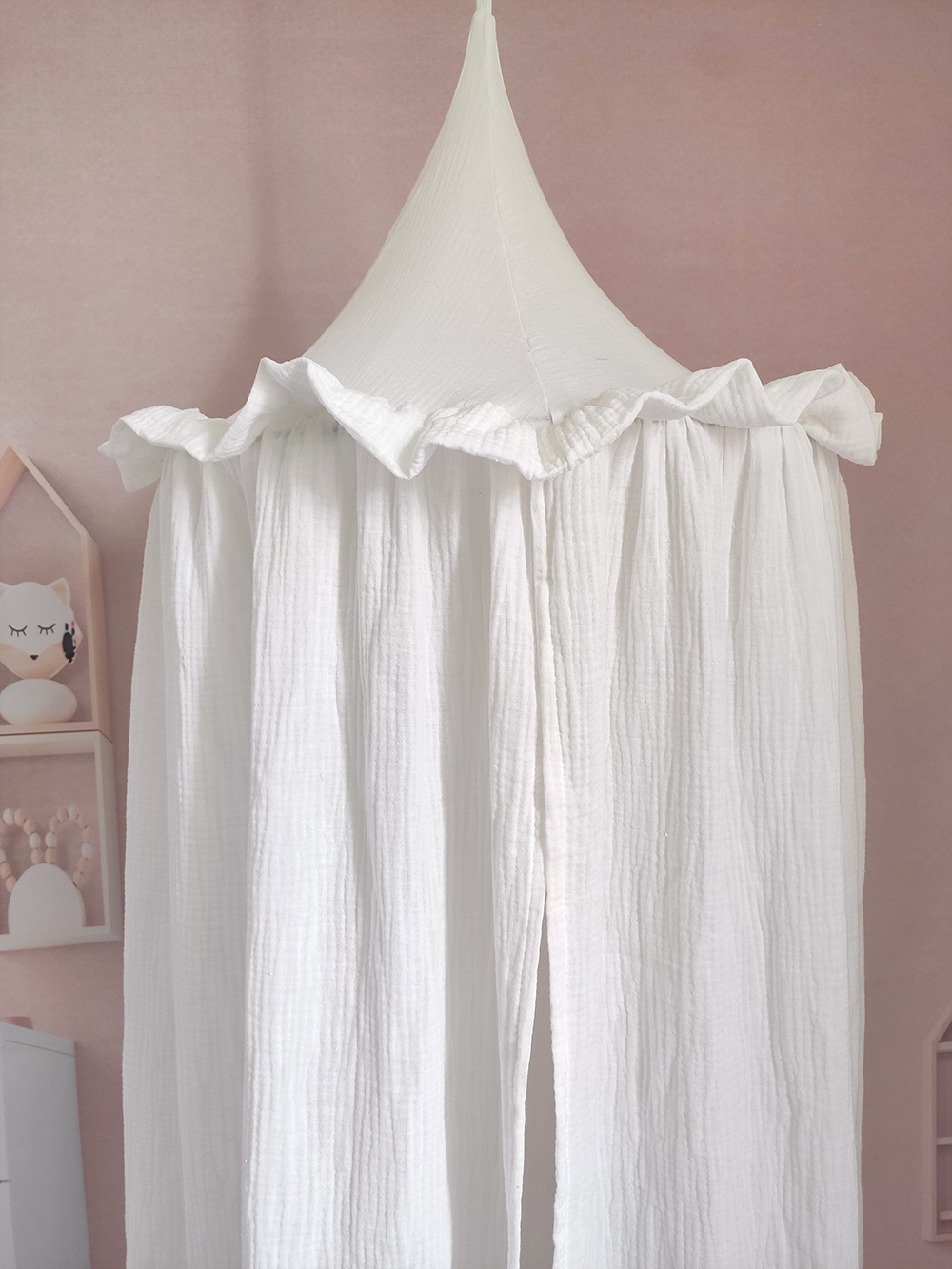 100% Premium Muslin Cotton Hanging Canopy with Frills Bed Baldachin for Kids Room