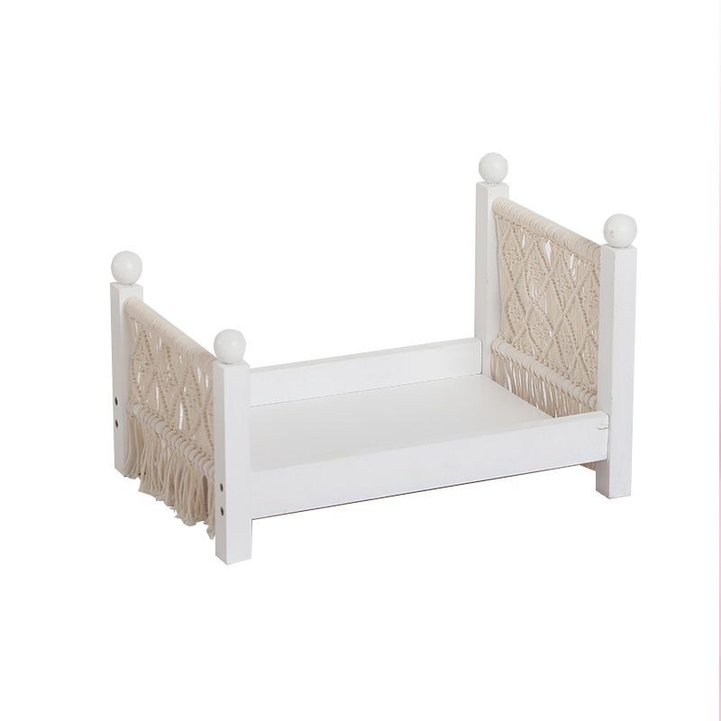 Retro Mini Bed Baby Photo Props Cotton Rope Weaving Baby Doll Toy Newborn Photography Posing Assisted Sofa Boys Girls Gifts