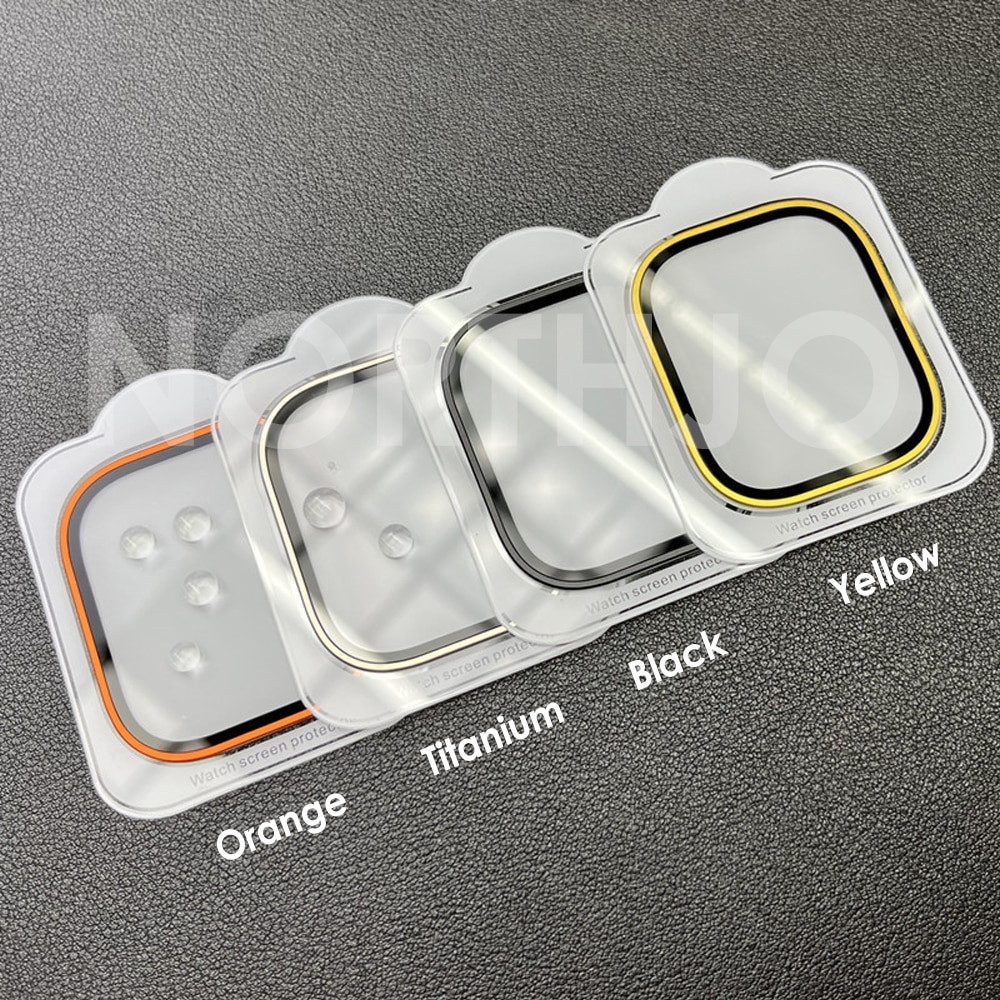 50Pcs for Apple Watch Ultra 49mm Metal Bumper Screen Protector Tempered Glass Film Aluminium Alloy Edge Accessories (Titanium)