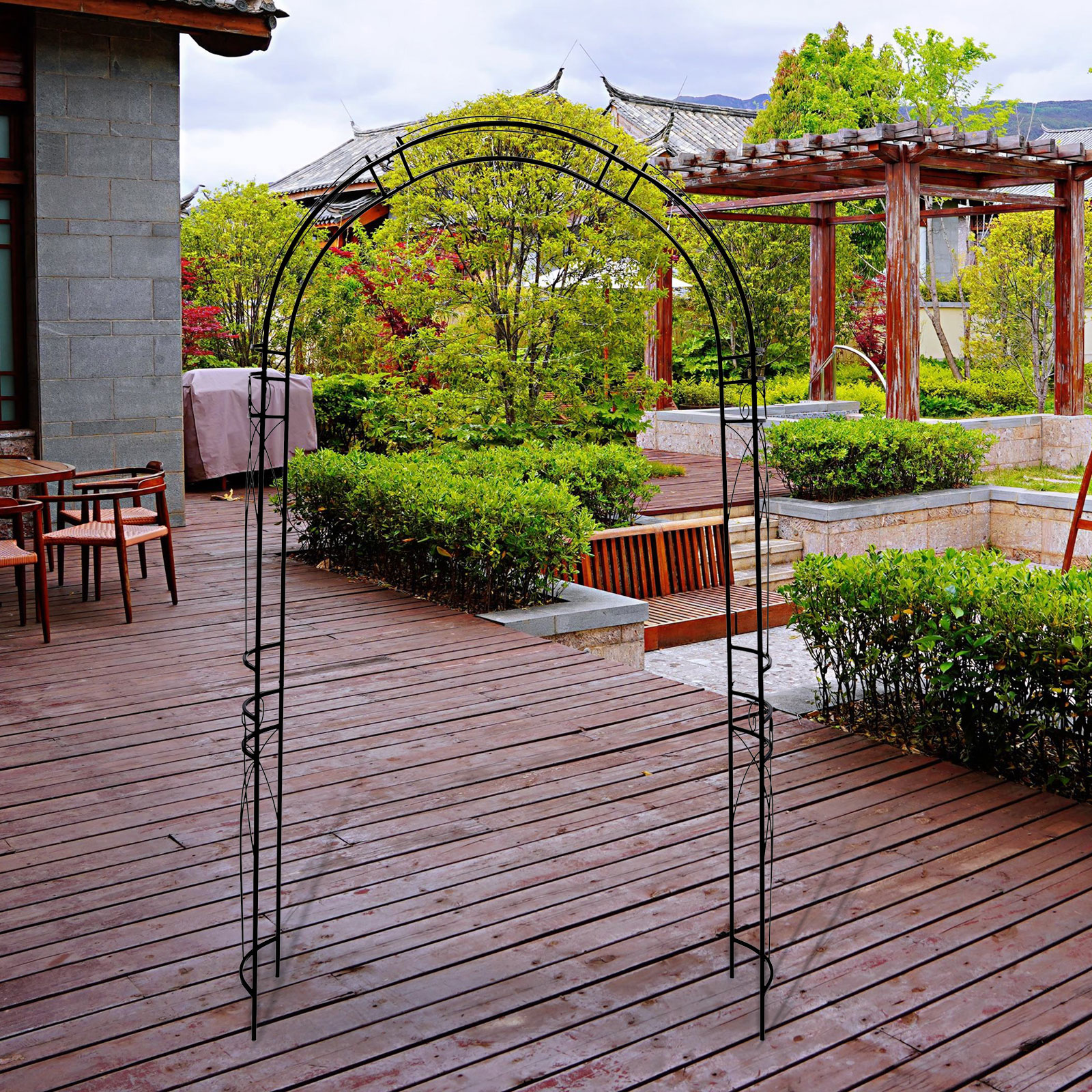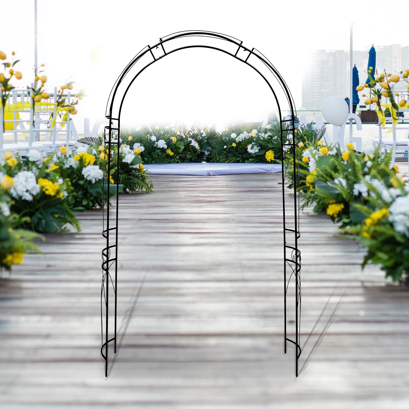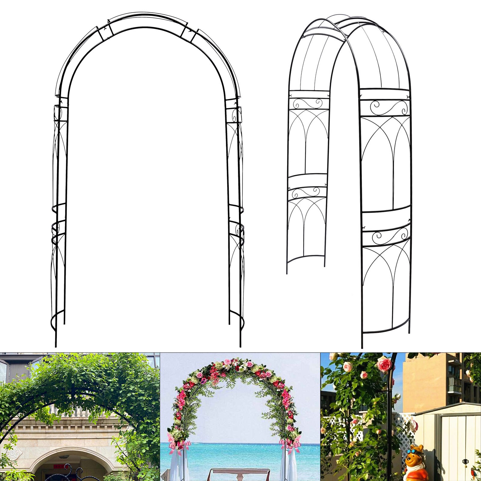 Black Metal Garden Arch Climbing Plants Trellis Archway Patio Wedding Outdoor Garden Lawn Backyard Patio Decoration