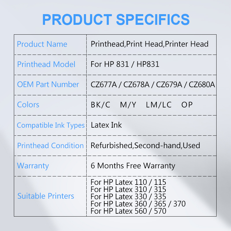 Be the first to review “For HP 831 HP831 Latex Printhead CZ677A CZ678A CZ679A CZ680A Print Head For HP Latex 110 115 310 315 330 335 360 365 370 560 570” Cancel reply