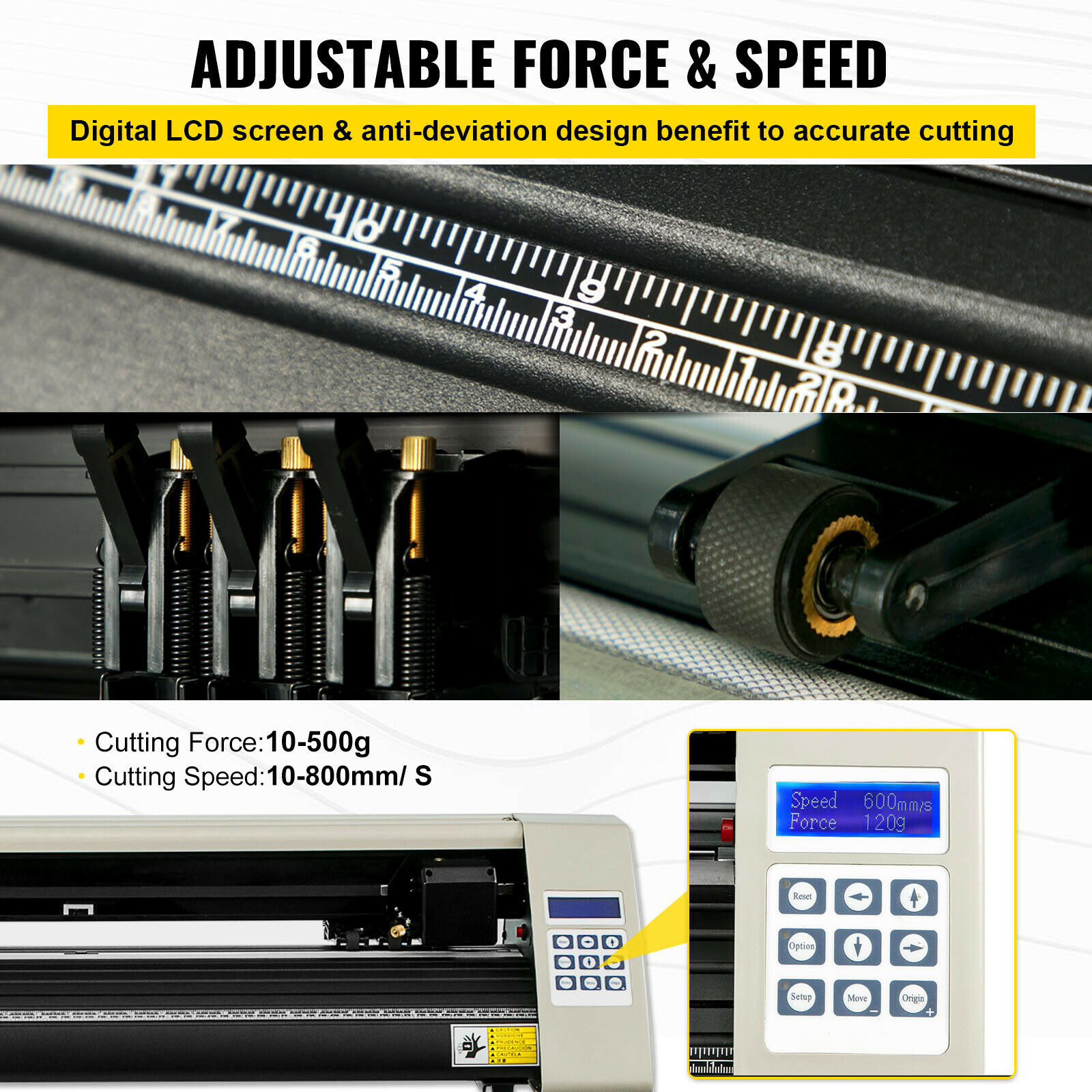 VEVOR 28Inch Vinyl Cutter/Plotter Sign Cutting Machine Software 3 Blades Backlight LCD Display White SIGNMASTER Software