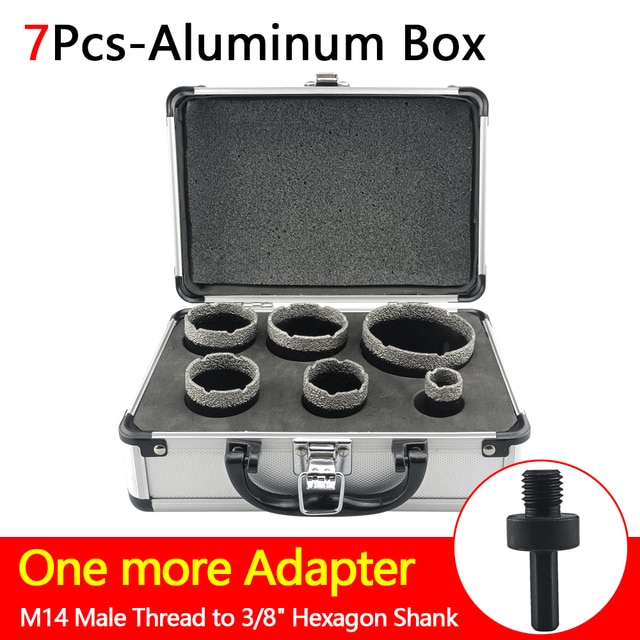 6 Pcs M14 Thread Diamond Dry Drill Bit Vacuum Brazed Drilling Core Bits Set Porcelain Tiles Crowns Granite Marble Hole Saw Tools – 7Pcs-Aluminum Box