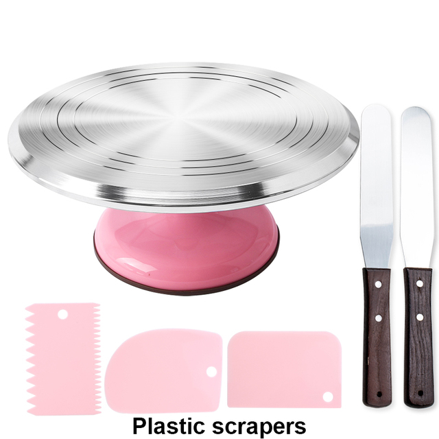 6Pcs/set Turntable Cake Decoration Accessories Set Rotating Cake Stand Tools Metal Stainless Steel Pastry Spatula Scraper