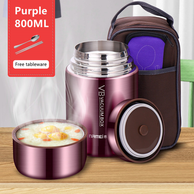 Food Thermal Jar Soup Gruel 316 Stainless Steel Vacuum Lunch Box Office Insulated Thermos Containers Spoon Bag 600/800/1000ML