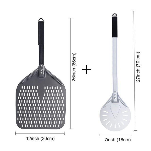 SHANGPEIXUAN 16/14/13/12 Inch Perforated Pizza Peel Rectangular Pizza Shovel Aluminum Hard Coating Pizza Peel Paddle Short Tool – 12inch and 7inch Set