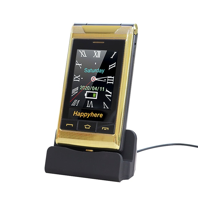 Happyhere F7 flip cell phones 3.0″ touch screen unlocked celular speed dial SOS FM radio senior Push-button cheap mobile phone
