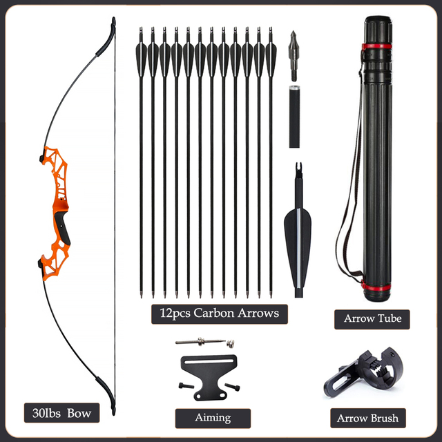 20/30/40/50lbs Archery Bow Recurve Take Down Straight Bow 12pcs Mixed Carbon Arrows Quiver Outdoor Sport Shooting Practice Bow