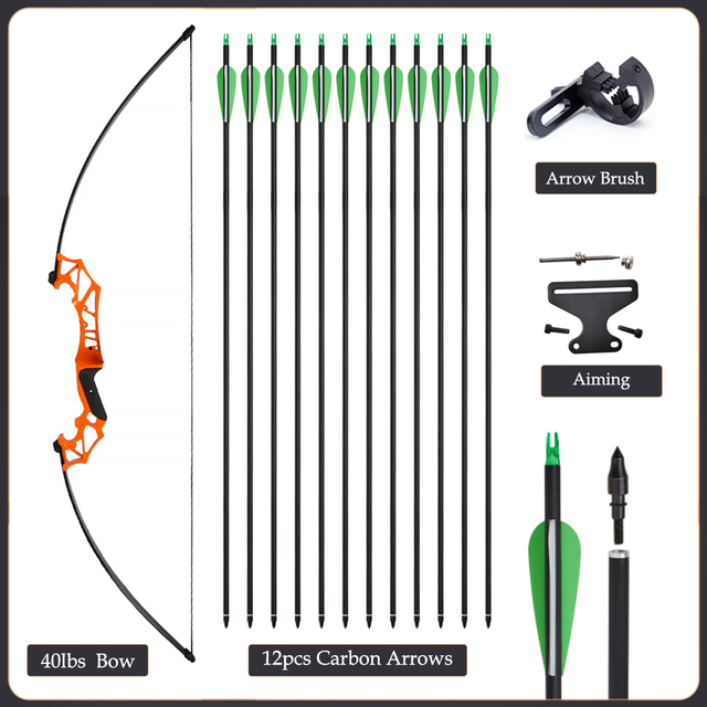 20/30/40/50lbs Archery Bow Recurve Take Down Straight Bow 12pcs Mixed Carbon Arrows Quiver Outdoor Sport Shooting Practice Bow