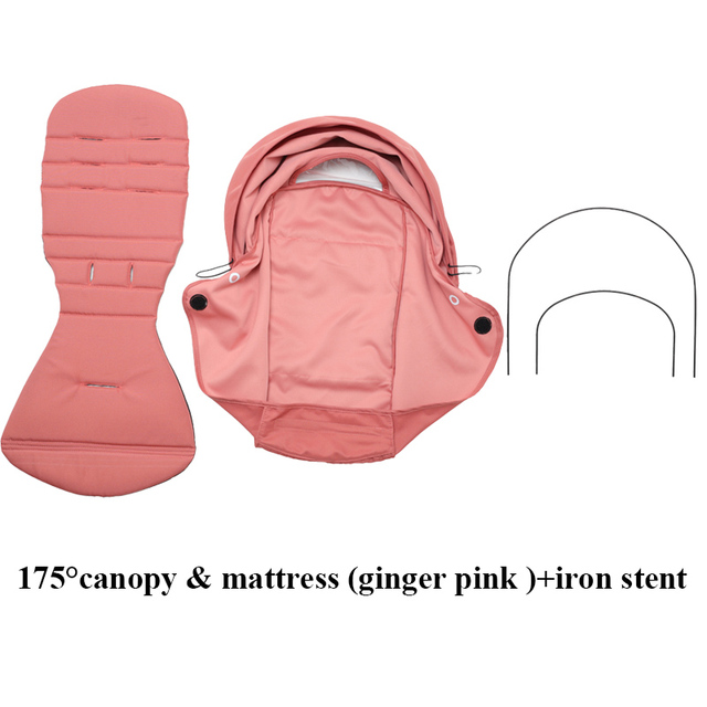 175°Stroller Accessories Hood&Mattress Set For Babyzen Yoyo Canopy Cover Seat Cushion Fit Yoya Pram Sunshade Original Fabric – pink and iron stent