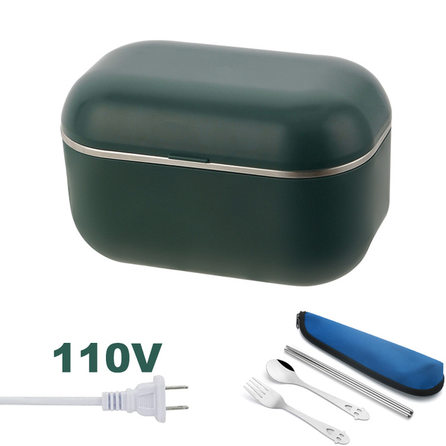 220V 110V 12V Electric Heated Lunch Box Stainless Steel Car EU US Plug Student Heating Lunchbox Food Warmer Container Leak proof – 110V Green
