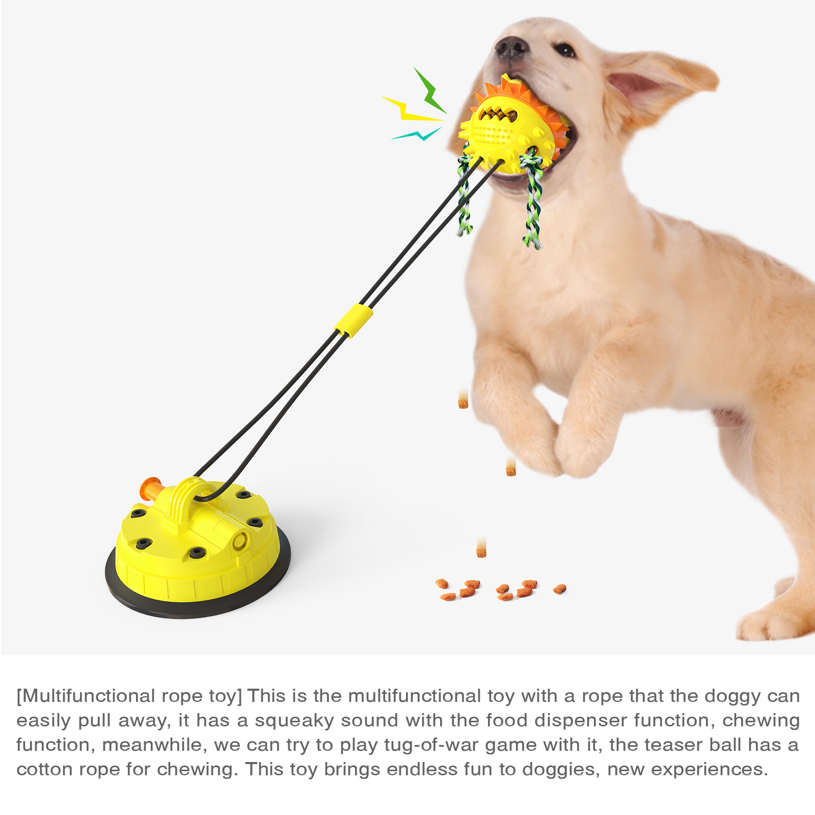 Dog Toy Tug of War Squeak Vacuum Cup Pull Rope Ball Leakage Feeding Teeth Cleaning